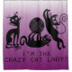 rideau de douche avec trois chats noirs jouant avec une boule de fil et du texte noir qui dit que je suis la dame de chat fou !