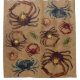Seul quelqu'un de courageux pourrait ajouter ce design déplaisant et gros araignée de mer à leur décor de salle de bain ! Grandes araignées et crabes rocheux aux couleurs marron, bleu, rouge et vert, rampant à travers une image de sable arrière - plan.