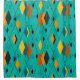 Ce rideau de douche a un design atomique moderne du milieu du siècle de diamants, et des éclats d'étoiles sur un champ de turquoise.