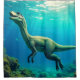 Ce rideau de douche a un dinosaure sur lequel on le voit.