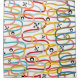 Ce rideau de douche a un design moderne du milieu du siècle des gribouillages qui courent verticalement dans des couleurs rétro avec des étoiles noires et des cercles éparpillés dans le design.