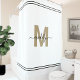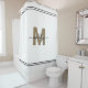 Rideau de douche personnalisé avec monogramme élégant en or blanc et écriture personnalisée. Ce rideau de douche chic ajoute une touche de luxe à n'importe quelle salle de bain avec un design de monogramme personnalisé sur un fond blanc croquant. Avec une lettre initiale grise en gras et un nom en écriture noire fluide, le design est accentué de doubles bandes blanches en haut et en bas pour un détail raffiné. Toutes les couleurs sont entièrement personnalisables pour correspondre à votre style et à la décoration de votre salle de bain. Parfait pour les mariages, les pendaisons de crémaillère ou les anniversaires, ce rideau de douche monogrammé allie style et praticité, ajoutant une élégance intemporelle à votre espace.