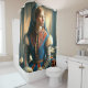 Ce rideau de douche a une femme IA photographiée dessus.