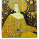 Une belle femme dorée dans le style de Gustav Klimt avec des dorures, des marron et des bleus.