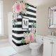 Belle aquarelle rose fleurie sur rideau de douche rayé rugby noir et blanc. Personnalisé avec votre monogramme/initial.