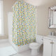 If you’re looking to liven up your bathroom this fun mid century pattern shower curtain will help you do just that! This design features abstract shapes and lines in the colors of turquoise blue, avocado green, orange, tan, blue, and black…and will look fab hanging in front of your bathtub.