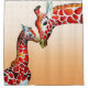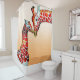 Ce mignon rideau de douche a une maman et une petite girafe en photo.