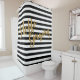 L'expression "Hello Gorgeous" en faux or donne une impression contre les rayures noires et blanches contrastées sur ce rideau de douche. Dites-le avec style. Disponible avec des produits correspondants.