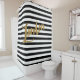 Le nom de la ville "Londres" en faux or donne une impression de contraste entre rayures noires et blanches sur ce rideau de douche. Idéal pour l'anglophile ou quelqu'un de "The Big Smoke". Disponible avec des produits correspondants.
