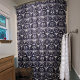 Profitez de cette sorcière motif de rideau de douche de jardin avec tous les ingrédients pour un sort fantaisiste. Champignons, chauves-souris, papillons de nuit et étoiles entwine dans un design amusant aussi chic que droll ! Dans le bleu nuit foncé élégant et crème pour élever votre décoration de salle de bain de cottage.