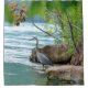 Une belle scène d'un grand héron bleu sur le rivage sur ce magnifique rideau de douche.