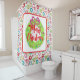 Ce rideau de douche à couronne verte rétro de Noël vert a une couronne en aluminium peint à la main avec des ornements rétro classiques, starburst, symboles atomiques, mélanger le motif de bord de couronne et le salut de Noël Joyeux. Personnalisez ce rideau de douche avec votre propre message de vacances. Ce rideau de douche est un excellent moyen d'égayer votre décoration rétro pour la période de Noël des Fêtes.