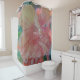 L'abstraite oeuvre florale tropicale sur ce rideau de douche, avec monogramme sur mesure, a commencé comme une photo originale de ZoeSPEAK d'une fleur d'hibiscus orange. La fleur de la photo a des couches de pétales rouillés dans des teintes douces de pêche, rose et jaune. Les couches abruptes sont entourées d'un arrière - plan de verts pastel et de bleus. Le design a une texture avec l'aspect de tissu piqué.
