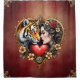 Le coeur du désert caché, un tigre majestueux et le profil d'une femme se mélangent astucieusement. Les deux motifs sont encastrés dans un cadre élégant en forme de coeur, soulignant l'humeur romantique. Le cadre est richement décoré de motifs floraux délicats qui se succèdent harmonieusement, lui conférant une touche ludique et imaginative. Au milieu des fleurs se trouve un coeur rouge vif, symbolisant l'amour et la passion.