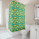 Ce rideau de douche a un design moderne du milieu du siècle de rectangles arrondis avec ovales à l'intérieur dans des couleurs rétro de turquoise, turquoise, blanc cassé et or. Si vous voulez le même design avec des couleurs différentes, envoyez-moi un message.