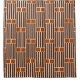 Ce rideau de douche a une conception géométrique de cinq lignes avec deux boîtes sur le dessus répétées sur le design.