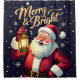 Celebrate the joy of the holiday season with this cheerful and nostalgic illustration of Santa Claus, beaming with warmth as he holds a glowing lantern amidst softly falling snowflakes. The phrase "Merry & Bright" arches gracefully above him in festive, hand-lettered typography, enhancing the cozy and magical mood. Rendered in a vibrant, vintage-inspired cartoon style, this design captures the essence of classic Christmas cheer with rich reds, golden light, and playful character expression. Ideal for evoking warmth, wonder, and seasonal nostalgia, it brings a timeless charm that resonates across generations. Perfect for holiday lovers drawn to whimsical retro vibes and joyful winter imagery. AI generated artwork.