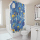 Rideaux De Douche Modern Abstract Blue Raindrops Gold Accents