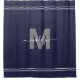 Créez votre propre rideau de douche personnalisé élégant avec monogramme bleu marine et blanc. Ce rideau de douche chic et stylé ajoute une touche luxueuse à n'importe quelle salle de bain avec un design de monogramme personnalisé sur un fond bleu marine épuré, présentant une lettre initiale grise audacieuse et un nom en écriture blanche fluide pour un look personnalisé et sophistiqué. Le rideau est accentué de doubles bandes blanches en haut et en bas, ajoutant un détail raffiné au design. Toutes les couleurs sont entièrement personnalisables pour s'adapter à votre style et à la décoration de votre salle de bain. Parfait pour ceux qui aiment les thèmes nautiques ou de maison de plage, ce rideau de douche personnalisé avec monogramme fait un cadeau attentionné pour les mariages, les pendaisons de crémaillère, les anniversaires ou toute