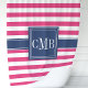 Éclairez votre salle de bain avec ce rideau de douche bleu marine et rose chaud. Le design dynamique présente des rayures audacieuses et un monogramme personnalisable, ajoutant une touche personnelle unique. Fabriqué en tissu de haute qualité, ce rideau assure durabilité et entretien facile, parfait pour un décor de salle de bain moderne et élégant.