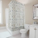 Rideau de douche avec une série de neuf (9) carreaux de style espagnol différents en motif de mosaïque de couleur neutre.