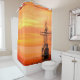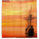 Ce rideau de douche a un bateau cool et le coucher de soleil y est représenté.