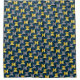 Ce rideau de douche a un design moderne du milieu du siècle des ovales dans la marine avec des demi-cercles dans les tons jaune et gris dans eux sur un champ de noir.