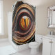Ce rideau de douche a un oeil de dinosaure dessus.