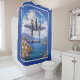 This vivid artwork showcases the P-38 Lightning flying over the Mediterranean Theater of World War II, framed by sunlit coastal cliffs, historic seaside villages, and deep blue waters below. Viewed from above, the P-38 twin-boom fighter dominated the sky as it patrolled strategic maritime routes once vital to Allied operations across Southern Europe and North Africa. This shower curtain makes a fun addition to your bathroom decor.