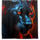 Une panthère noire illustrée, soyeuse, avec des yeux rouges et une lueur rouge.