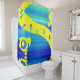 Ce rideau de douche a une photo d'un patineur dessus.