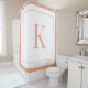 peach and white Initial monogram shower curtain .modern stylish white custom shower curtain. home gift ,