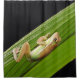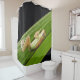 Une adorable petite grenouille accrochée à une feuille sur ce merveilleux rideau de douche.