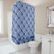 rideau de douche PiccoGrande, avec texte personnalisé et motif shibori japonais blanc sur arrière - plan bleu marine. Modifiez facilement le texte par défaut en cliquant sur le bouton Personnaliser.