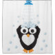 Pingouin mignon prenant une douche avec des bulles sur sa tête