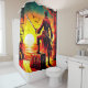 Ce rideau de douche a un pirate dessus.