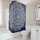 Un style mandala assez complexe et fleuri sur un rideau de douche durable. L'arrière - plan est bleu marine foncé mais peut être customisé.