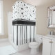 Pois noirs et blancs mignons et rideau de douche rayé.