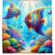 Ce rideau de douche a une scène de poisson coloré dessus.