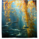 Ce rideau de douche a une photo de quelques poissons et kelp dessus.