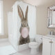 Lapin soufflant une gomme à bulle rose. Des crèches pour décorer la chambre de votre enfant.