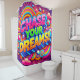 Ce rideau de douche coloré dit "Chase Your Dreams" dessus.