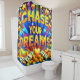Ce rideau de douche dit "Chase Your Dreams !" dessus.
