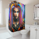 Ce rideau de douche est muni d'un rocker punk coloré.