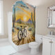 coucher de soleil tableau d'un vélo dans le désert entouré de cactus