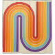 This artwork channels a retro graphic spirit, forming the letter‑like curve with parallel bands of red, orange, yellow, light blue, teal, and purple. The layered arcs flow in harmony, evoking the bold optimism of 1970s design. Set against a soft beige background, the vibrant rainbow palette stands out with clarity and rhythm. The composition balances simplicity and dynamism, creating a timeless visual that feels both nostalgic and modern.