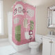 Un art abstrait kitsch des années 1950 d'inspiration rétro avec des formes arrière - plans roses et des formes de bol vert et bronzé, ainsi que diverses lignes en noir et blanc.