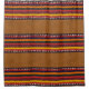 Ce design rustique de l'ouest est composé de cuir imitation entrecoupé de motifs rayés ethniques colorés en gras rouge, vert, jaune or, orange et bleu marine indigo aux accents noir et blanc, parfait pour créer un look confortable, décontracté et décontracté dans votre salle de bain.