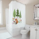 Rideaux De Douche Scandinavian Style Fox Flowers Trees Illustration