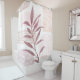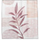 An abstract watercolor featuring patterned shapes and a botanical in a palette of maroon and soft calming colors.